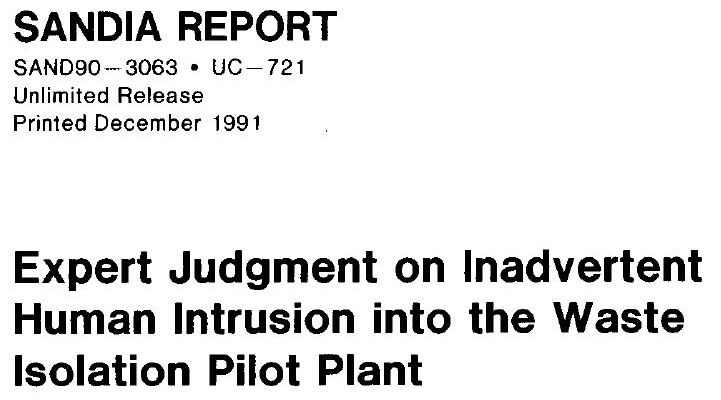 Nuclear Borderlands is a stunning piece of comprehensive research. Along the way, there are some conjectures and rabbit holes which suggest that a book like this could easily be converted into volumes. One of the more interesting pieces of esotera I picked up along the way was Masco’s brief mention of a government-sanctioned text titled Expert Judgment on Inadvertent Human Intrusion into the Waste Isolation Pilot Plant.