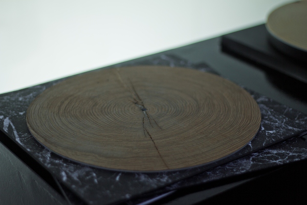 BT: The concept itself took some work to make it into a working physical prototype, but after some time of playing around with a wide range of input mechanisms, and having to experience a lot of setbacks, I had something that almost worked like I wanted it. Finding an aesthetic form (visually and aurally) for it was rather hard because I wanted to avoid any implications supporting tendencies like emotional kitsch or esotericism, which wood is prone to do when presented in a certain way – especially when the combination of wood and music (which is emotional) already supported this notion. So I tried to build something very reduced and formalistic around it. I painted it completely in black to draw the focus to the matter itself: the wood and its structure.