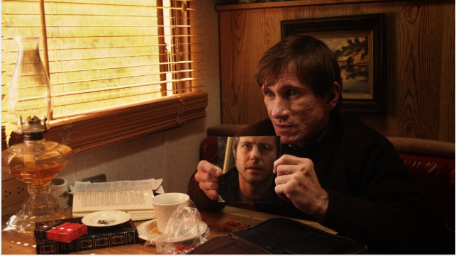 Justin Benson and Aaron Moorhead’s Resolution is a Failure kind of film. In some ways, it is far too smart to succeed as a horror film, though the film’s premise sets up the kind of low-budget lock-down that powers good B-screamers. Michael (Peter Cilella), an ostensibly successful graphic-designer, returns to his rural hometown in the desert near the Mexican border. He is there in a last ditch effort to get his child hood friend Chris (the very funny Vinny Curran) to kick a meth addiction and go to rehab. Michael shows up as a very high Chris, deep in meth-psychosis, is unloading a pistol at invisible birds. He makes small-talk with Chris, then a half-hearted final plea for sobriety, then tazers Chris into submission and handcuffs him to the wall. This is the Miles David approach to tough love: Chris gets Gatorade, powerbars, and a shit-bucket for the next seven days.