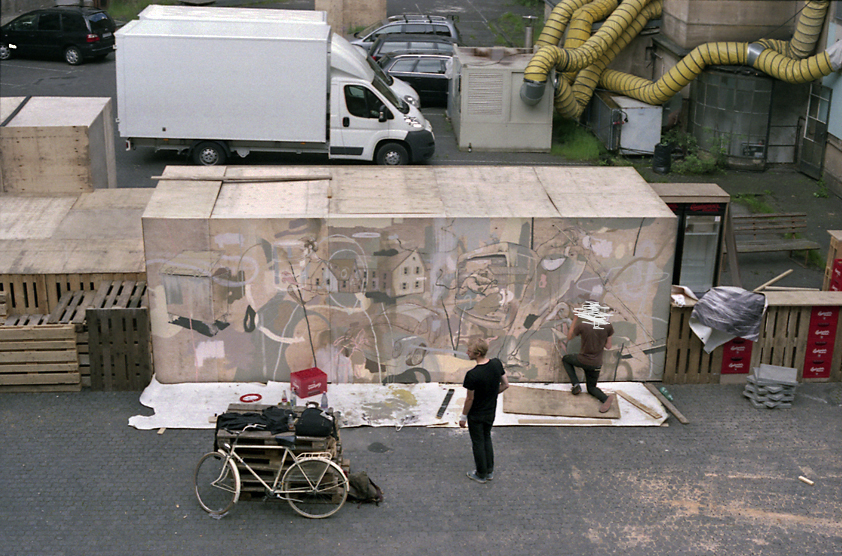 Perry talks about how some of his work, for example Nerd Herder, is a “fun and nifty picture that doesn’t say much.” That work allowed him to find a certain artistic vocabulary. I asked him about whether or not he does sketches before starting a piece. “I’m shameless about making a plan.” But he then explained how he did a wall in Berlin without a plan at all.